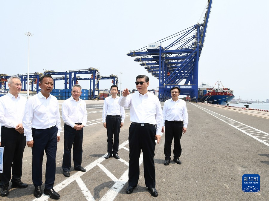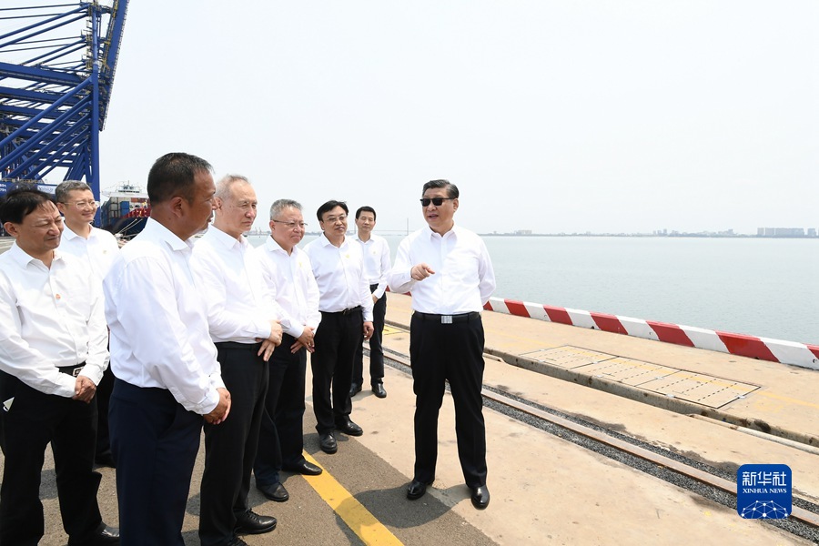 隨后,習(xí)近平來到洋浦國際集裝箱碼頭小鏟灘港區(qū),了解港口建設(shè)發(fā)展情況,同現(xiàn)場作業(yè)人員、掛職干部代表等親切交流。習(xí)近平強調(diào),振興港口、發(fā)展運輸業(yè),要把握好定位,增強適配性,堅持綠色發(fā)展、生態(tài)優(yōu)先,推動港口發(fā)展同洋浦經(jīng)濟開發(fā)區(qū)、自由貿(mào)易港建設(shè)相得益彰、互促共進,更好服務(wù)建設(shè)西部陸海新通道、共建“一帶一路”。他指出,黨中央選派干部來自由貿(mào)易港掛職,既體現(xiàn)了黨中央對自由貿(mào)易港建設(shè)的關(guān)心和支持,也是對干部的培養(yǎng)鍛煉,要發(fā)揮掛職干部的積極作用,讓他們在基層一線增長才干。