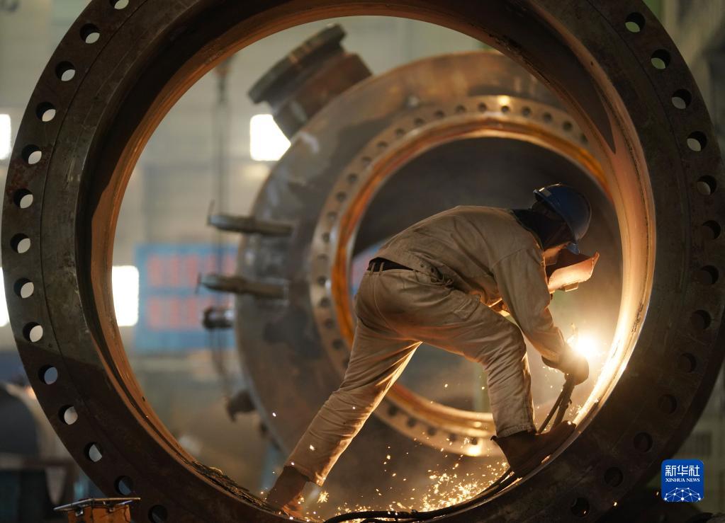 4月14日,在哈電集團(tuán)哈爾濱鍋爐廠有限責(zé)任公司車(chē)間,工人進(jìn)行生產(chǎn)作業(yè)。新華社記者 王建威 攝