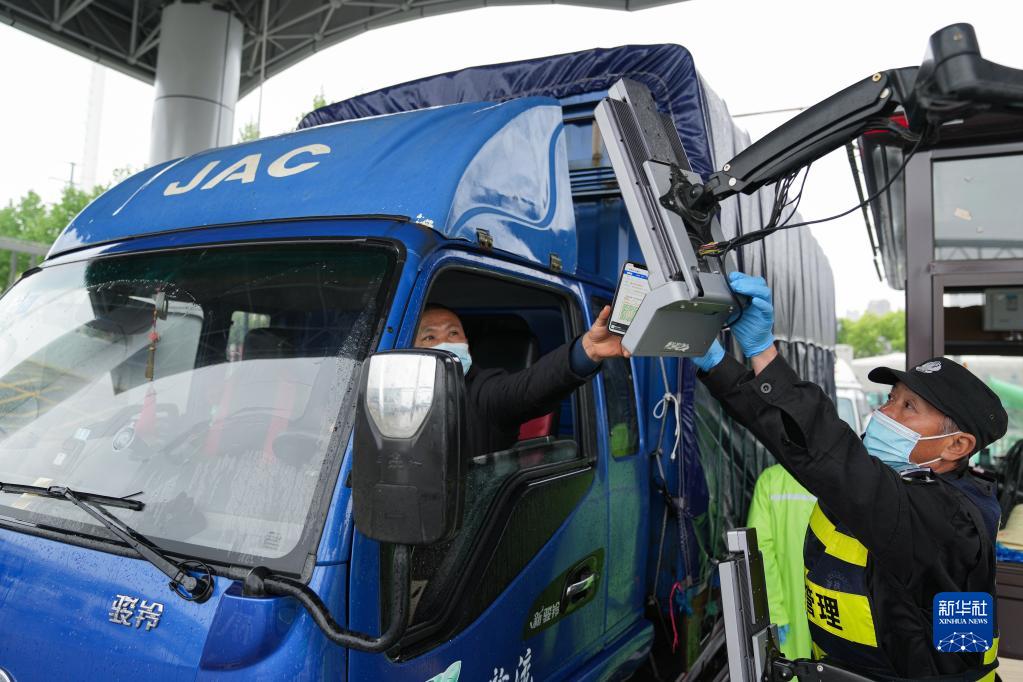 在安徽合肥百大周谷堆大興農(nóng)產(chǎn)品物流園,司機(jī)在智能化門禁系統(tǒng)上掃碼進(jìn)入(4月13日攝)。該園建立集測(cè)溫、核驗(yàn)安康碼、數(shù)據(jù)收集等功能的智能化門禁系統(tǒng),進(jìn)場(chǎng)駕乘人員不用下車即可快速核驗(yàn),實(shí)現(xiàn)防疫測(cè)溫智能化、人車追溯數(shù)據(jù)化。新華社記者杜宇攝