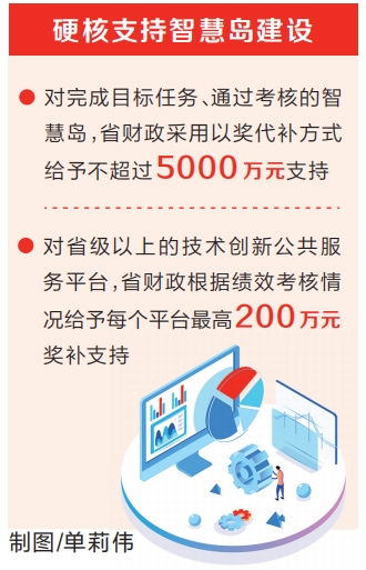 如何支持智慧島建設(shè)?我省將給出“真金白銀”硬投入。對(duì)完成目標(biāo)任務(wù)、通過(guò)考核的智慧島,省財(cái)政結(jié)合其任務(wù)完成情況,采用以獎(jiǎng)代補(bǔ)方式給予不超過(guò)5000萬(wàn)元支持,主要用于支持智慧島研發(fā)設(shè)計(jì)、成果轉(zhuǎn)化、檢驗(yàn)檢測(cè)等公共服務(wù)平臺(tái)建設(shè)和高層次人才引進(jìn);對(duì)省級(jí)以上的技術(shù)創(chuàng)新公共服務(wù)平臺(tái),省財(cái)政根據(jù)績(jī)效考核情況給予每個(gè)平臺(tái)最高200萬(wàn)元獎(jiǎng)補(bǔ)支持;入駐智慧島的科研機(jī)構(gòu)、企業(yè)建設(shè)的重點(diǎn)實(shí)驗(yàn)室、技術(shù)創(chuàng)新中心、企業(yè)技術(shù)中心、工程研究中心等創(chuàng)新平臺(tái)被新認(rèn)定為國(guó)家級(jí)創(chuàng)新平臺(tái)的,省財(cái)政給予每個(gè)平臺(tái)500萬(wàn)元一次性獎(jiǎng)勵(lì)。