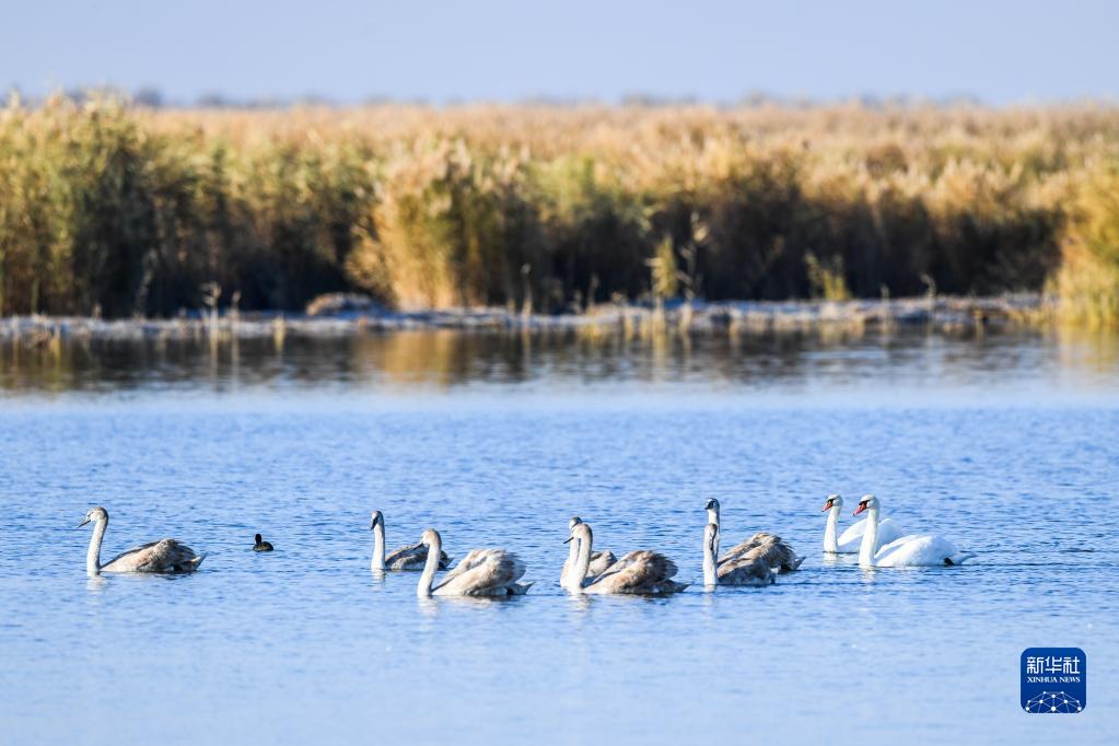 這是2019年10月25日在烏梁素海拍攝的候鳥。新華社記者 劉磊 攝