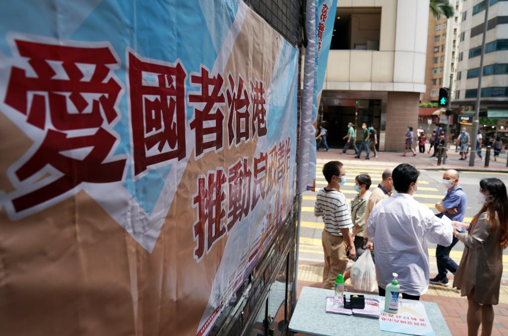 2021年9月21日,香港街頭舉辦“落實愛國者治港 推動良政善治”街站宣傳活動。 新華社記者 李鋼 攝