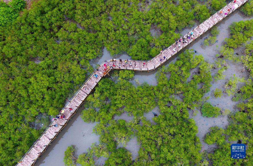 這是在廣西北海市金海灣紅樹林生態(tài)休閑區(qū)拍攝的紅樹林(2017年8月23日攝,無人機照片)。新華社記者 黃孝邦 攝