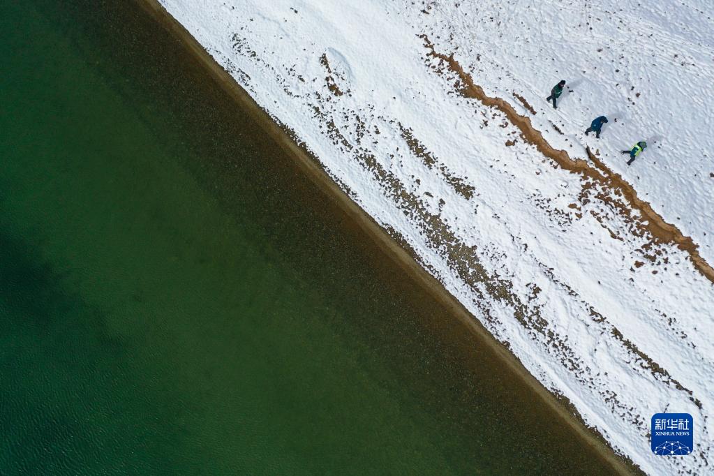 2021年10月20日,在青海省果洛藏族自治州瑪多縣扎陵湖鄉(xiāng)勒那村,三江源國家公園黃河源園區(qū)生態(tài)管護(hù)員在巡護(hù)(無人機(jī)照片)。新華社記者 張龍 攝