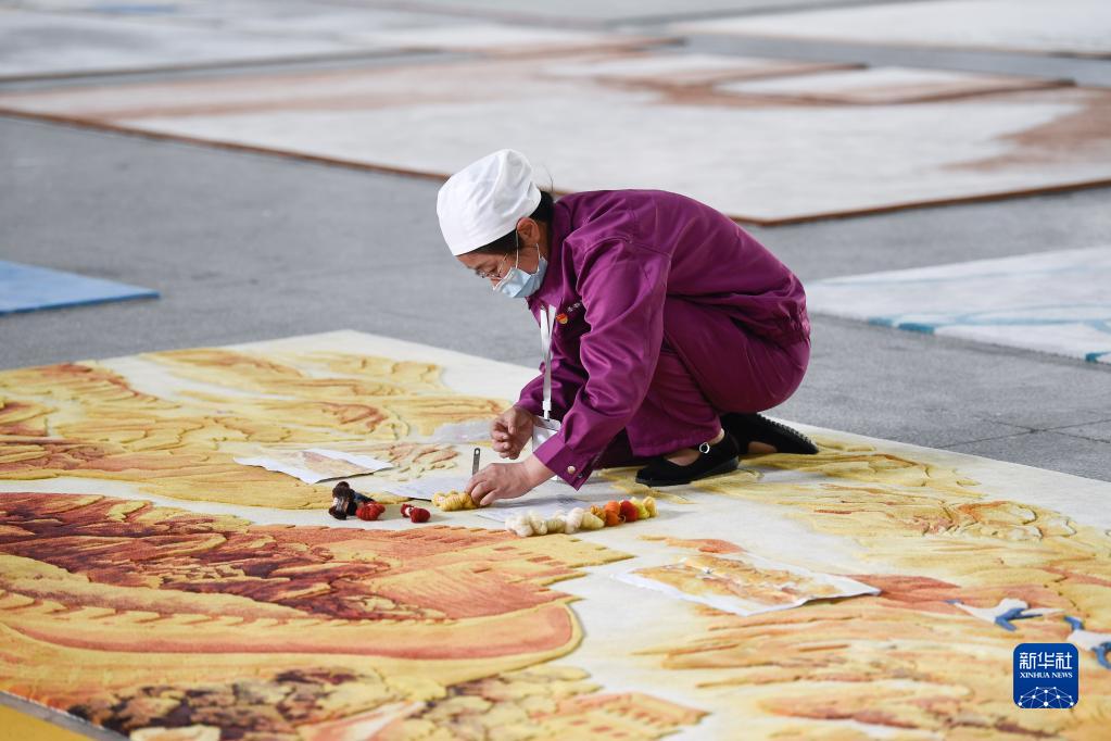 2021年6月7日,在青海圣源地毯集團(tuán)有限公司生產(chǎn)車間內(nèi),工人在制作藏毯。新華社記者 張龍 攝