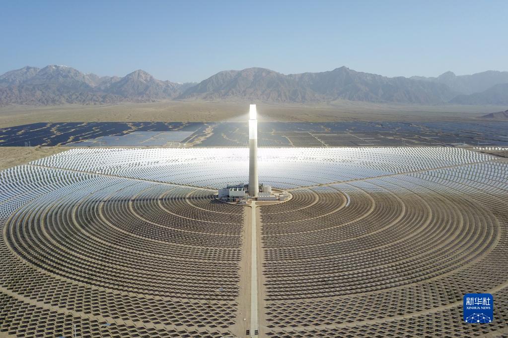 這是2022年6月8日在青海省海西蒙古族藏族自治州德令哈市光伏(光熱)產(chǎn)業(yè)園拍攝的青海中控德令哈50兆瓦光熱電站(無人機(jī)照片)。新華社記者 范培珅 攝