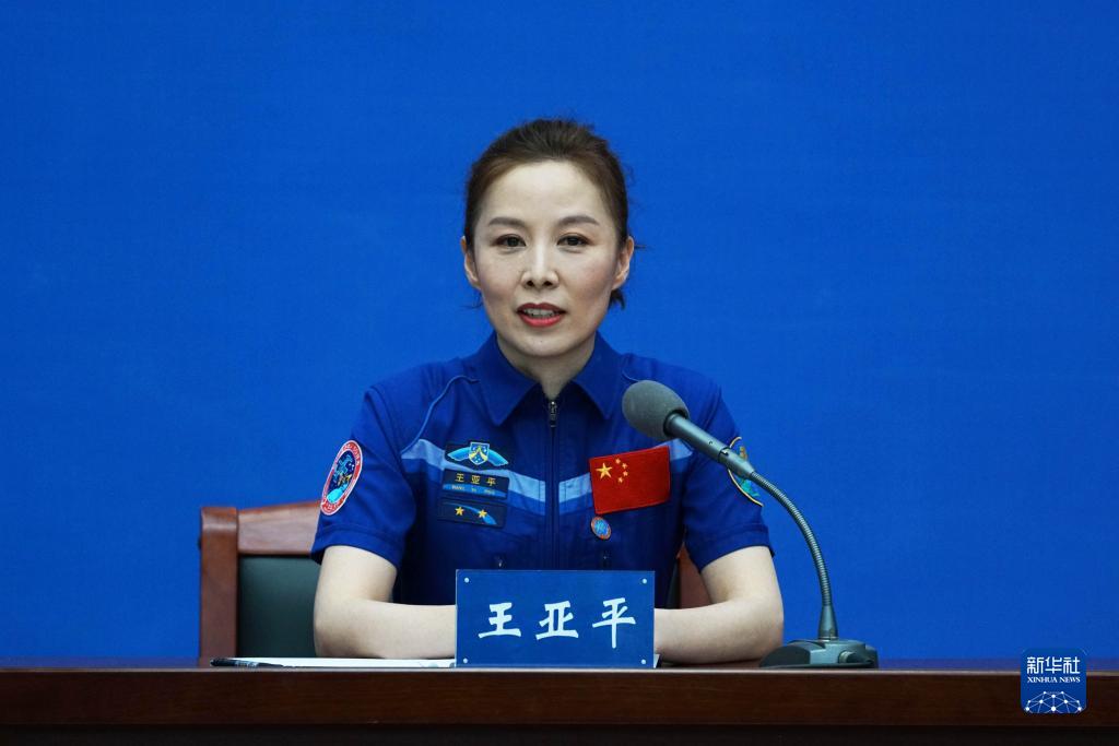 6月28日,神舟十三號航天員王亞平在北京航天城回答記者提問。新華社記者 郭中正 攝