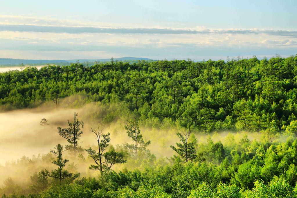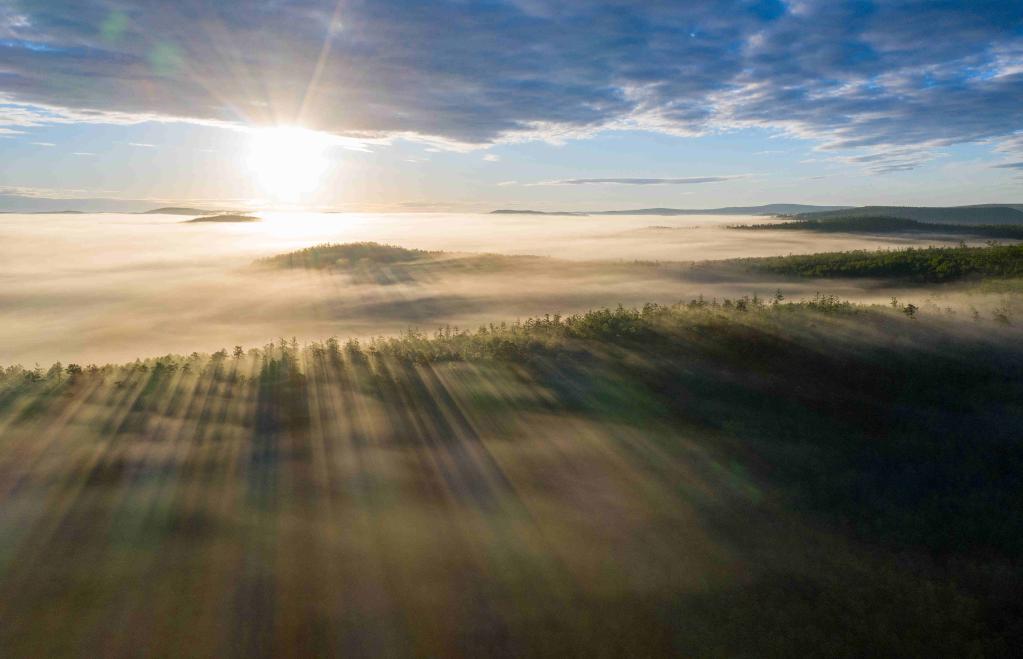 薄霧繚繞下的內蒙古大興安嶺林區(qū)。(受訪單位供圖)