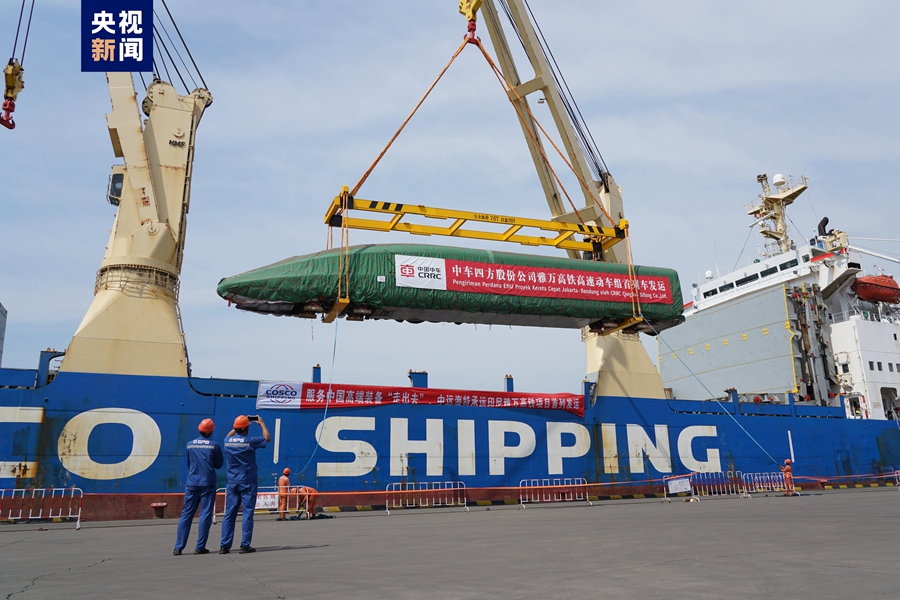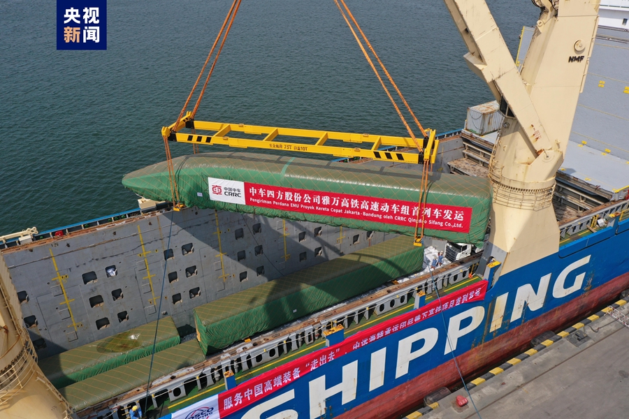 ? ?8月21日,我國出口印尼用于雅萬高鐵的1組高速動車組和1組綜合檢測列車在青島港順利完成裝船,通過海運發(fā)往印尼。這是雅萬高鐵首批發(fā)運列車,標志著我國首次出口國外的高鐵列車正式啟運。