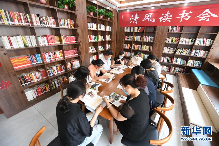 2020年6月23日,河北省棗強(qiáng)縣紀(jì)委監(jiān)委組織部分單位黨員干部,在縣文化廣電和旅游局舉行“清風(fēng)讀書(shū)會(huì)”。新華社記者 李曉果 攝