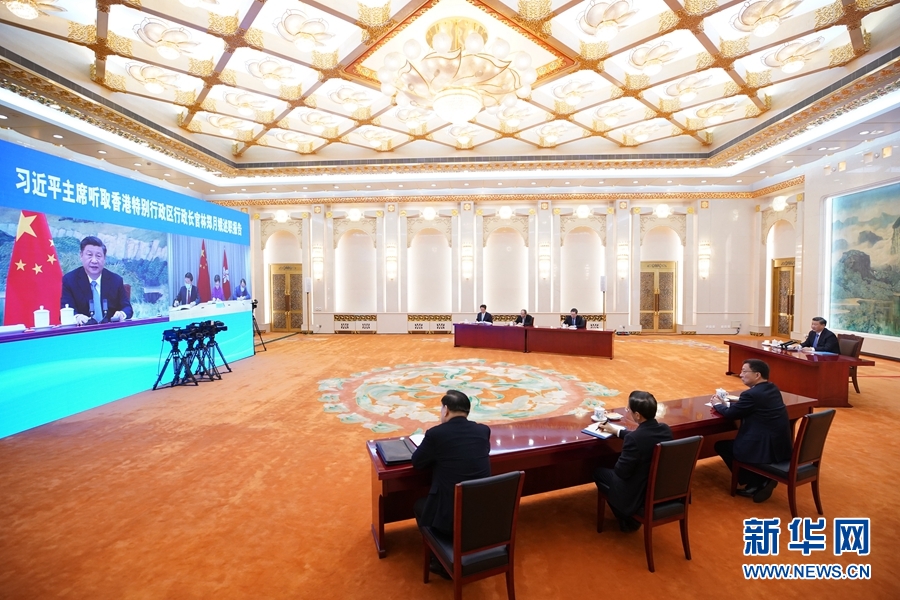 1月27日,國(guó)家主席習(xí)近平在北京以視頻連線方式聽(tīng)取了香港特別行政區(qū)行政長(zhǎng)官林鄭月娥2020年度的述職報(bào)告。新華社記者 劉彬 攝