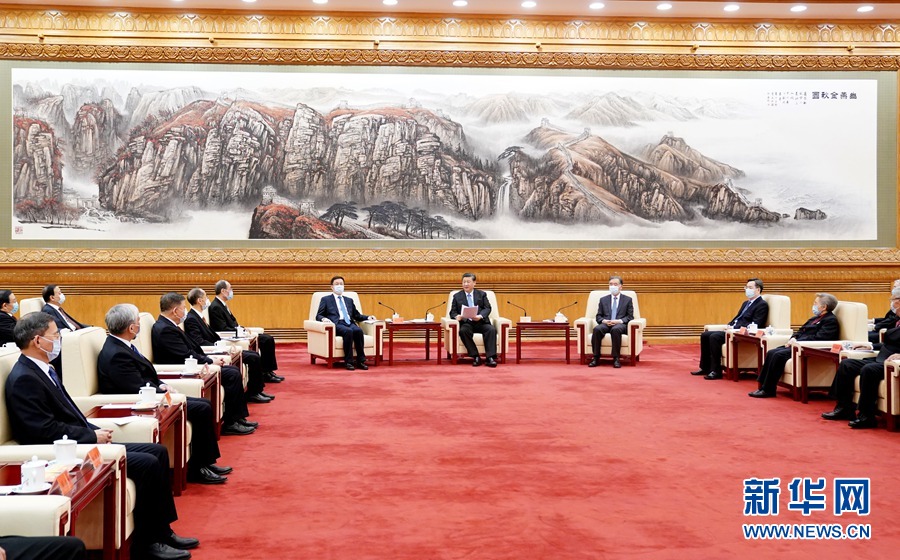 在聽取萬鄂湘致辭后,習(xí)近平發(fā)表了重要講話。他強(qiáng)調(diào), 2020 年是新中國歷史上極不平凡的一年。面對嚴(yán)峻復(fù)雜的形勢任務(wù)、前所未有的風(fēng)險(xiǎn)挑戰(zhàn),中共中央團(tuán)結(jié)帶領(lǐng)全黨全國各族人民齊心協(xié)力、迎難而上,統(tǒng)籌疫情防控和經(jīng)濟(jì)社會(huì)發(fā)展,統(tǒng)籌深化改革開放和應(yīng)對外部壓力,統(tǒng)籌抓好 “ 六穩(wěn) ” 工作和落實(shí) “ 六保 ” 任務(wù),決勝全面建成小康社會(huì)、決戰(zhàn)脫貧攻堅(jiān)。經(jīng)過艱苦努力,疫情防控取得重大戰(zhàn)略成果,經(jīng)濟(jì)增長率先實(shí)現(xiàn)由負(fù)轉(zhuǎn)正,脫貧攻堅(jiān)任務(wù)如期完成, “ 十三五 ” 圓滿收官, “ 十四五 ” 全面擘畫,全面建成小康社會(huì)取得偉大歷史性成就。這是中國共產(chǎn)黨堅(jiān)強(qiáng)領(lǐng)導(dǎo)的結(jié)果,也是包括各民主黨派、工商聯(lián)和無黨派人士在內(nèi)的全國各族人民萬眾一心、頑強(qiáng)拼搏的結(jié)果。
