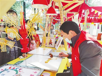 在離鄭州非遺集市不遠(yuǎn)的一片草地上,一位身穿黃棉襖的小女孩正在認(rèn)真捏著面塑。聊天中,記者了解到,她叫周熙晴,今年九歲,在中原區(qū)特色實(shí)驗(yàn)小學(xué)上學(xué),平時(shí)特別喜歡民間藝術(shù)捏面人,趁著放假,她也在二砂文創(chuàng)園擺了個(gè)小桌子,現(xiàn)場(chǎng)為大家表演捏面人。周熙晴的爸爸告訴記者,看到春節(jié)期間這里有熱鬧的非遺集市,女兒也想現(xiàn)場(chǎng)展示一下技藝。“鄭州非物質(zhì)文化遺產(chǎn)需要一代代傳承下去。我們做家長(zhǎng)的,特別支持孩子學(xué)習(xí)這些傳統(tǒng)技藝。希望鄭州非遺在傳承中創(chuàng)新,在創(chuàng)新中發(fā)揚(yáng)光大!”本報(bào)記者 成燕 文\圖