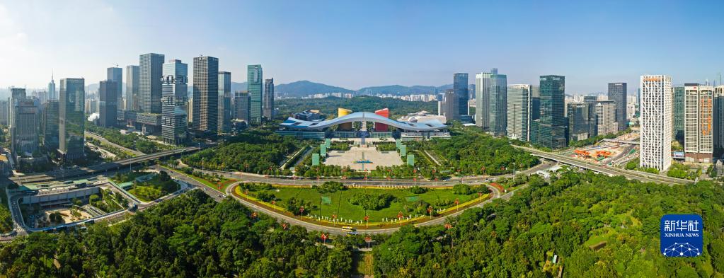 這是深圳市民中心和蓮花山公園一線(2020年10月2日攝,無人機(jī)照片)。新華社記者 梁旭 攝