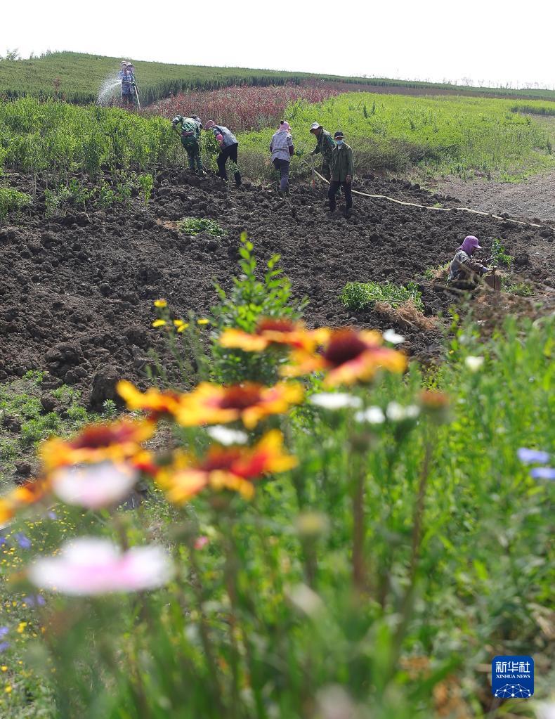 2022年6月2日,工人在遼寧撫順西露天礦內植樹。新華社記者 楊青攝