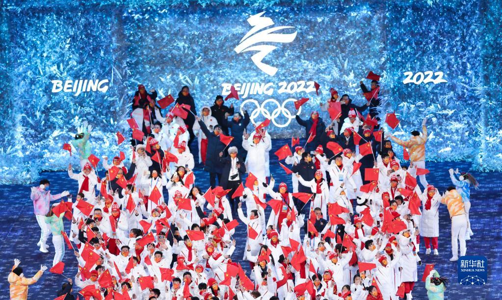 2022年2月20日晚,北京第二十四屆冬季奧林匹克運動會閉幕式在國家體育場舉行。這是中國代表團成員入場。新華社記者 蘭紅光 攝