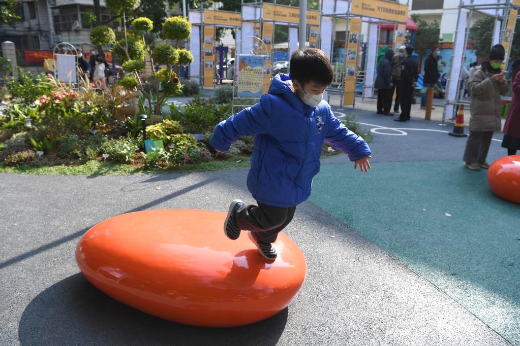 2022年12月17日,小朋友在廣西南寧青秀區(qū)南湖小區(qū)改造后的中心花園玩耍。新華社記者周華 攝