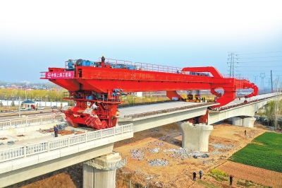 3月19日,濟(jì)鄭高鐵濮陽至省界段項(xiàng)目全部558榀箱梁順利完成架設(shè)任務(wù)。 郝慶凱 攝