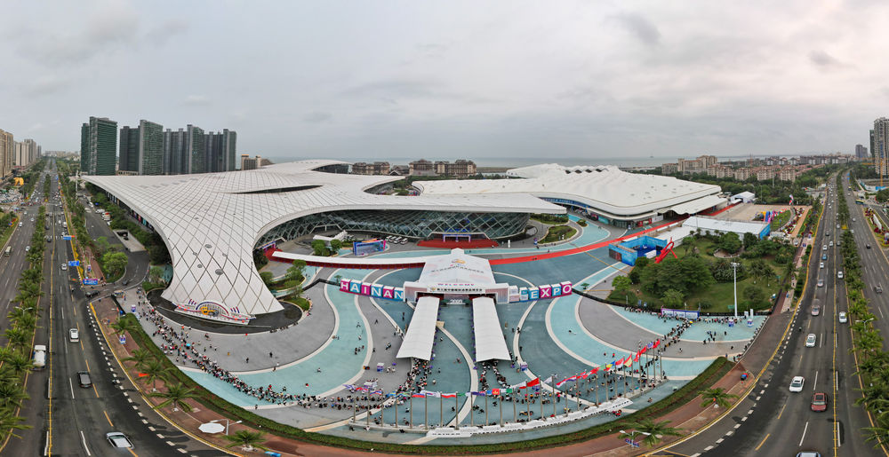 4月14日,觀眾有序排隊進(jìn)場(無人機(jī)照片)。當(dāng)日,第三屆中國國際消費品博覽會迎來社會公眾開放日,吸引觀眾前來觀看展覽、選購商品。新華社記者 楊冠宇 攝