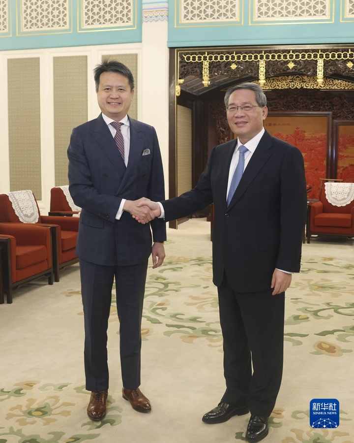 4月27日上午,國務院總理李強在北京中南海紫光閣會見世界知識產(chǎn)權(quán)組織總干事鄧鴻森。新華社記者劉衛(wèi)兵攝