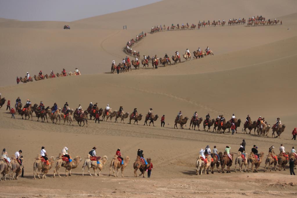 “2400多峰駱駝全部‘上崗’,從早到晚忙不過來!原本40分鐘的路程現(xiàn)在要走1小時(shí)左右?!倍鼗网Q沙山月牙泉景區(qū)負(fù)責(zé)人說。