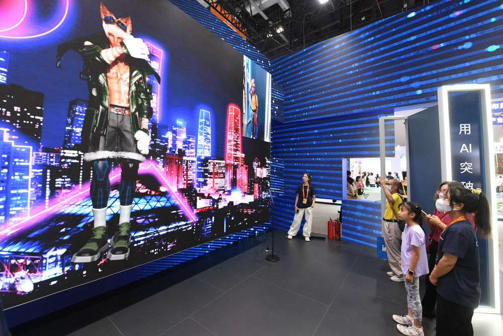 9月3日,一名參觀者在首鋼園中國移動展臺體驗基于AR/VR特效的敦煌導(dǎo)覽,沉浸式感受敦煌壁畫的魅力。新華社記者 李鑫 攝