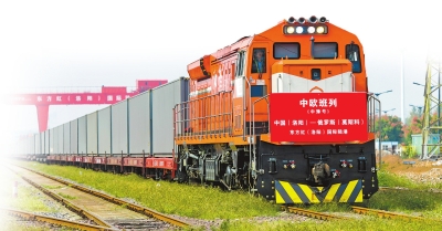 10月11日,東方紅(洛陽)國際陸港開出今年第79列中歐班列(中豫號),該趟國際貨運班列滿載55個40英尺集裝箱的“洛陽造”鋼制家具、家用電器等,貨值近130萬美元,從洛陽直達莫斯科。 張怡熙 董笑晨 攝