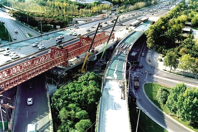 ??同時,黃河路立交西向南匝道以及集散車道南段的鋼箱梁也完成架設和焊接,正在緊張地施工防撞墻和橋面鋪裝,預計11月下旬完成改造通車。