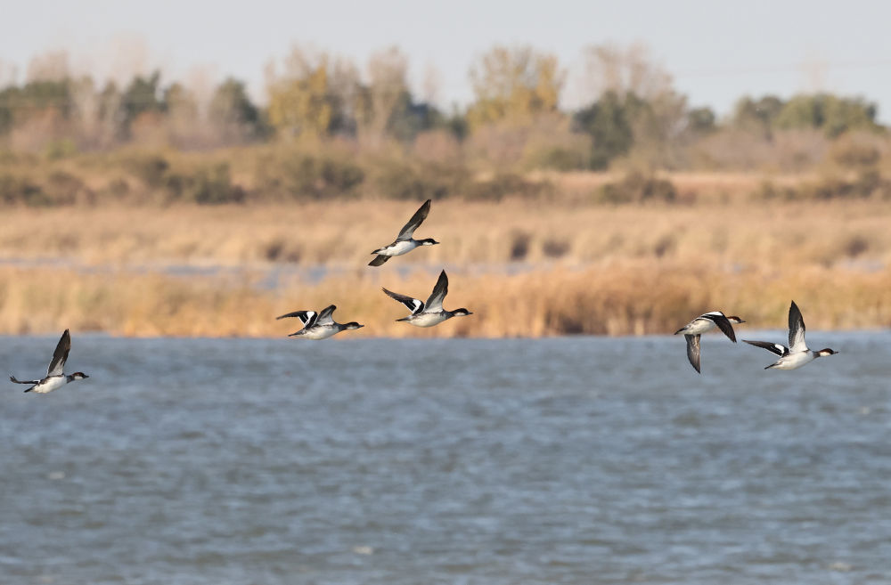 2023年11月12日,在黃河三角洲國(guó)家級(jí)自然保護(hù)區(qū),越冬候鳥(niǎo)在飛翔。新華社記者 徐速繪 攝