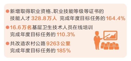開展職業(yè)技能培訓和評價取證。2023年,全省累計開展職業(yè)技能培訓428.7萬人次,新增取得職業(yè)資格、職業(yè)技能等級等證書的技能人才328.8萬人,高技能人才124.8萬人,分別完成年度目標任務的142.9%、164.4%、155.9%。