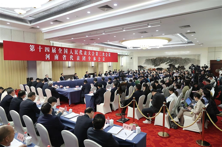 ?3月7日下午,十四屆全國人大二次會(huì)議河南代表團(tuán)舉行全體會(huì)議,并向境內(nèi)外媒體開放。本報(bào)記者 董亮 杜小偉 攝