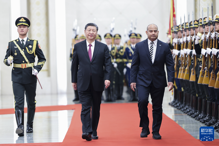 ??3月25日下午,國家主席習(xí)近平在北京人民大會(huì)堂同來華進(jìn)行國事訪問的瑙魯總統(tǒng)阿迪昂舉行會(huì)談。這是會(huì)談前,習(xí)近平在人民大會(huì)堂北大廳為阿迪昂舉行歡迎儀式。新華社記者 劉彬 攝