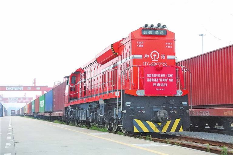 這趟班列踏上的是一條新征程,標志著中歐班列(鄭州)南通道“跨兩?!本€路開通運行。