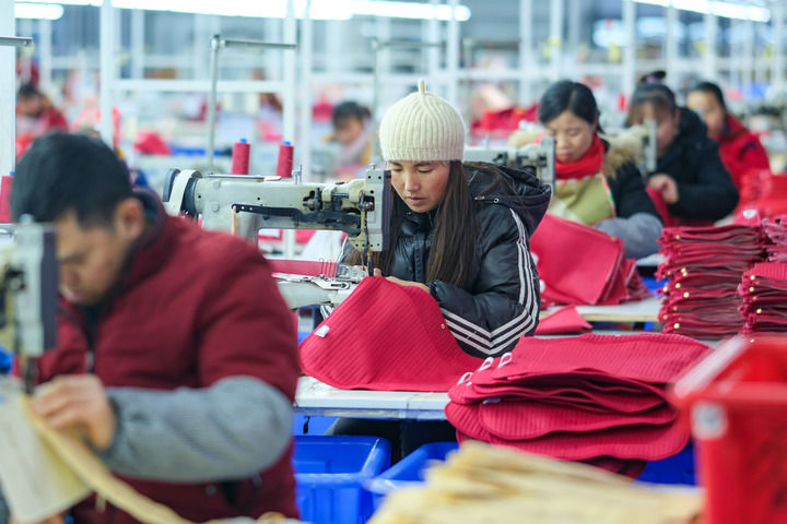 ??2024年1月18日,社區(qū)居民在紅安社區(qū)的鄉(xiāng)村振興就業(yè)車(chē)間工作。紅安社區(qū)是由易地搬遷安置區(qū)單獨(dú)成立的新社區(qū),位于湖南省湘西土家族苗族自治州鳳凰縣禾庫(kù)鎮(zhèn)。新華社記者 張鋮 攝