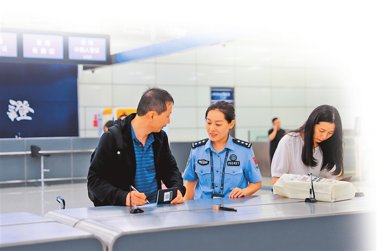 鄭州出入境邊防檢查站民警在引導旅客填寫外國人入境卡。 謝文長 攝