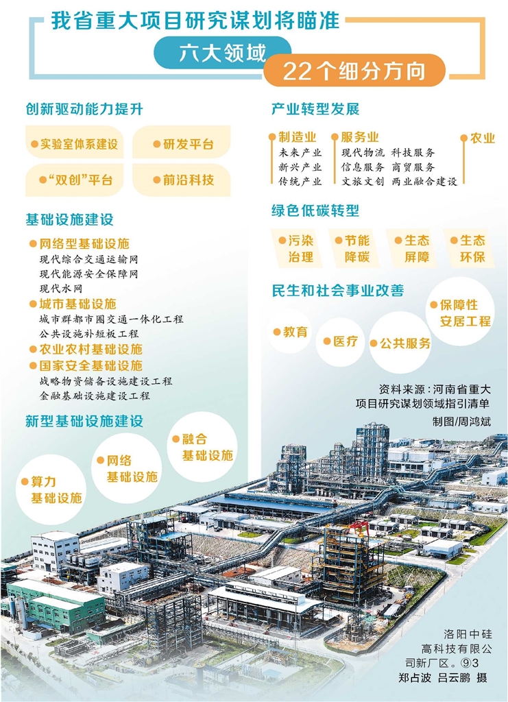 我省將聚焦事關(guān)全省長遠發(fā)展的重大事項,聚焦經(jīng)濟社會發(fā)展和民生改善,聚焦戰(zhàn)略性發(fā)展和根本性問題,瞄準(zhǔn)“六大領(lǐng)域、22個細分方向”,在創(chuàng)新能力提升、基礎(chǔ)設(shè)施建設(shè)、新型基礎(chǔ)設(shè)施建設(shè)、產(chǎn)業(yè)轉(zhuǎn)型發(fā)展、綠色低碳轉(zhuǎn)型、民生和社會事業(yè)改善等領(lǐng)域研究謀劃重大項目。