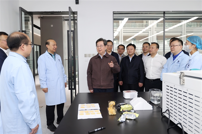 十月八日,省委書記樓陽生到漯河市調研中原食品實驗室技術創(chuàng)新、成果轉化等情況。 本報記者 董亮 蔡迅翔 攝