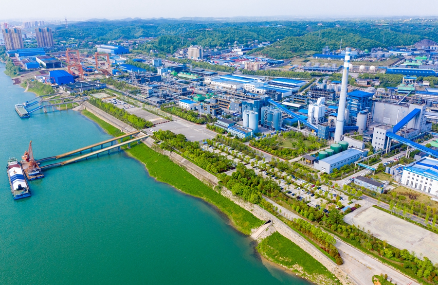 ??這是位于湖北省宜昌市的興發(fā)集團(tuán)宜昌新材料產(chǎn)業(yè)園(2022年4月19日攝,無人機(jī)照片)。新華社發(fā)
