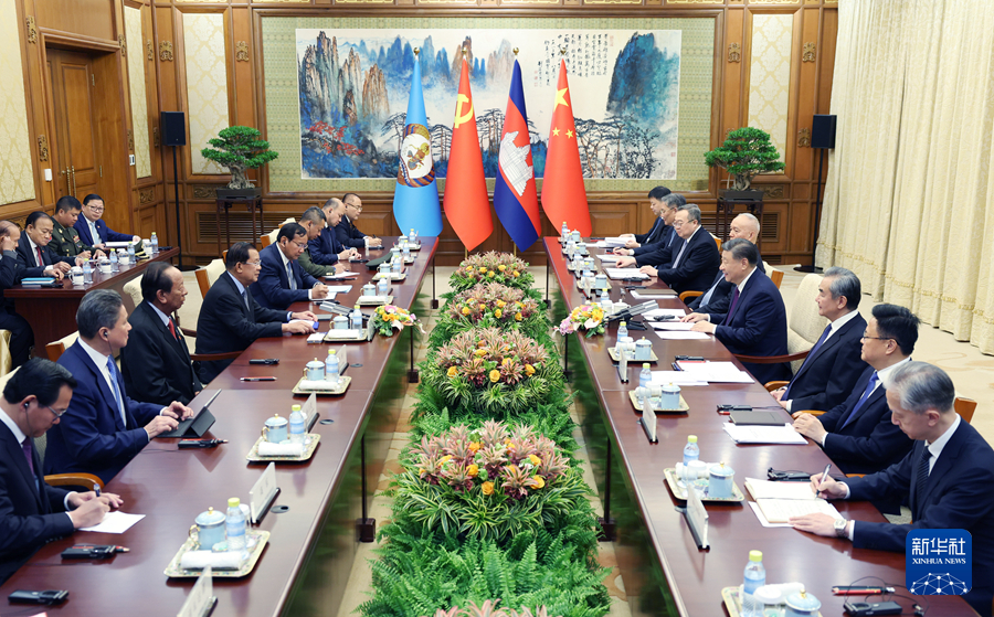 ??習(xí)近平指出,當(dāng)前,國(guó)際形勢(shì)變亂交織,全球性挑戰(zhàn)層出不窮,考驗(yàn)著各國(guó)的應(yīng)對(duì)和選擇。中柬兩國(guó)都致力于做世界的和平力量、發(fā)展力量、進(jìn)步力量。中方將繼續(xù)支持柬埔寨在國(guó)際和地區(qū)事務(wù)中發(fā)揮更大作用,壯大“全球南方”力量,支持東盟堅(jiān)持戰(zhàn)略自主,維護(hù)中心地位,堅(jiān)決反對(duì)外部勢(shì)力將冷戰(zhàn)思維引入本地區(qū),堅(jiān)定不移推動(dòng)?xùn)|盟一體化和共同體建設(shè)。中方愿同柬方堅(jiān)定道不改、志不變的決心,增強(qiáng)底線思維,加強(qiáng)協(xié)作和配合,共同應(yīng)對(duì)各種風(fēng)險(xiǎn)。