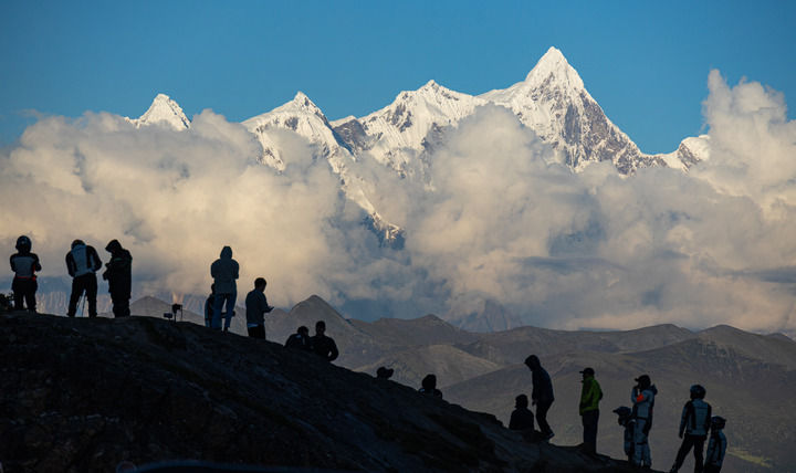 ??游客在色季拉山口的川藏公路邊觀(guān)賞南迦巴瓦峰風(fēng)光(2023年9月5日攝)。新華社記者 丁增尼達(dá) 攝