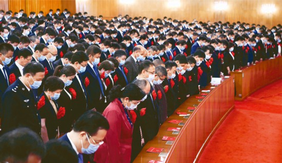 此時(shí)此刻,我們特別要向?yàn)榭箵粢咔槎⒂芦I(xiàn)身的烈士們,向在疫情中不幸罹難的同胞們,表達(dá)深切的思念和沉痛的哀悼!